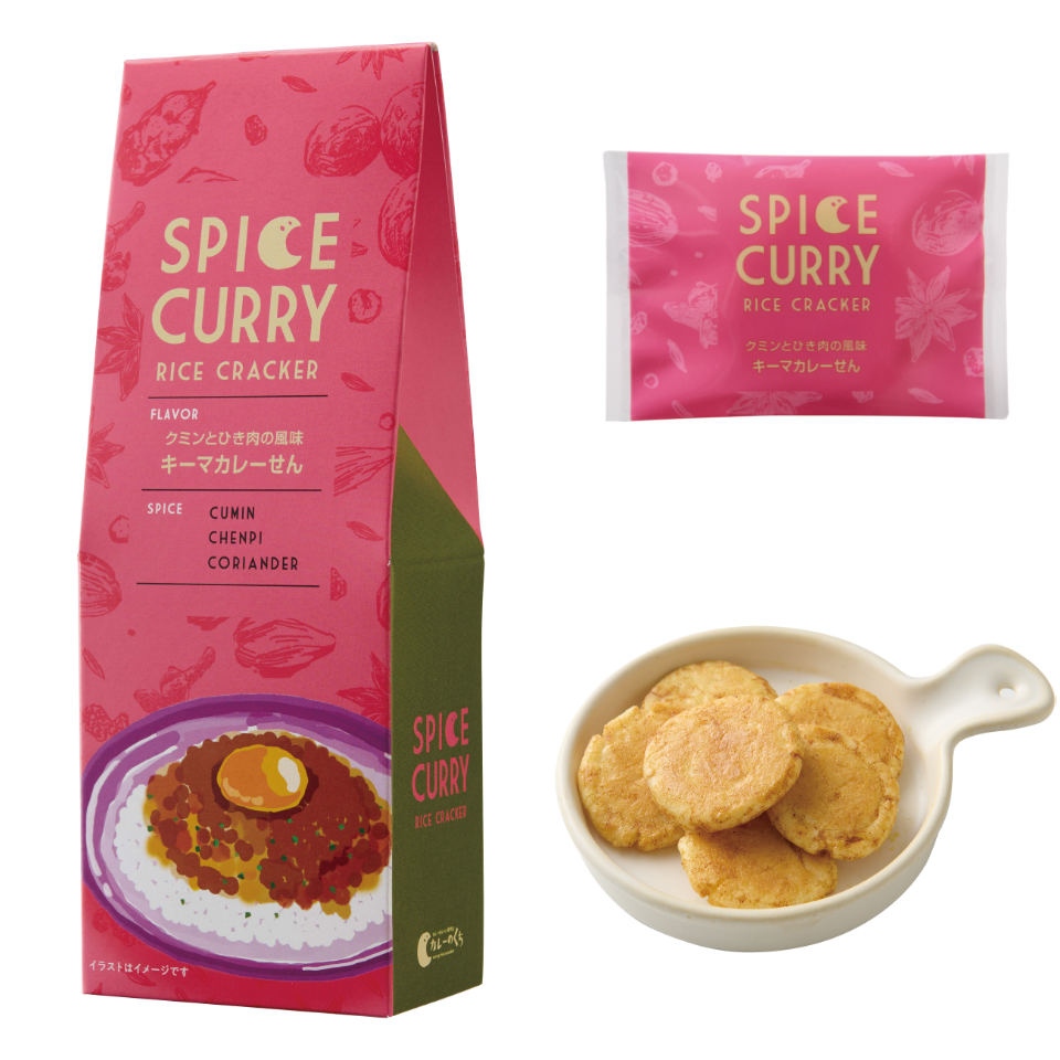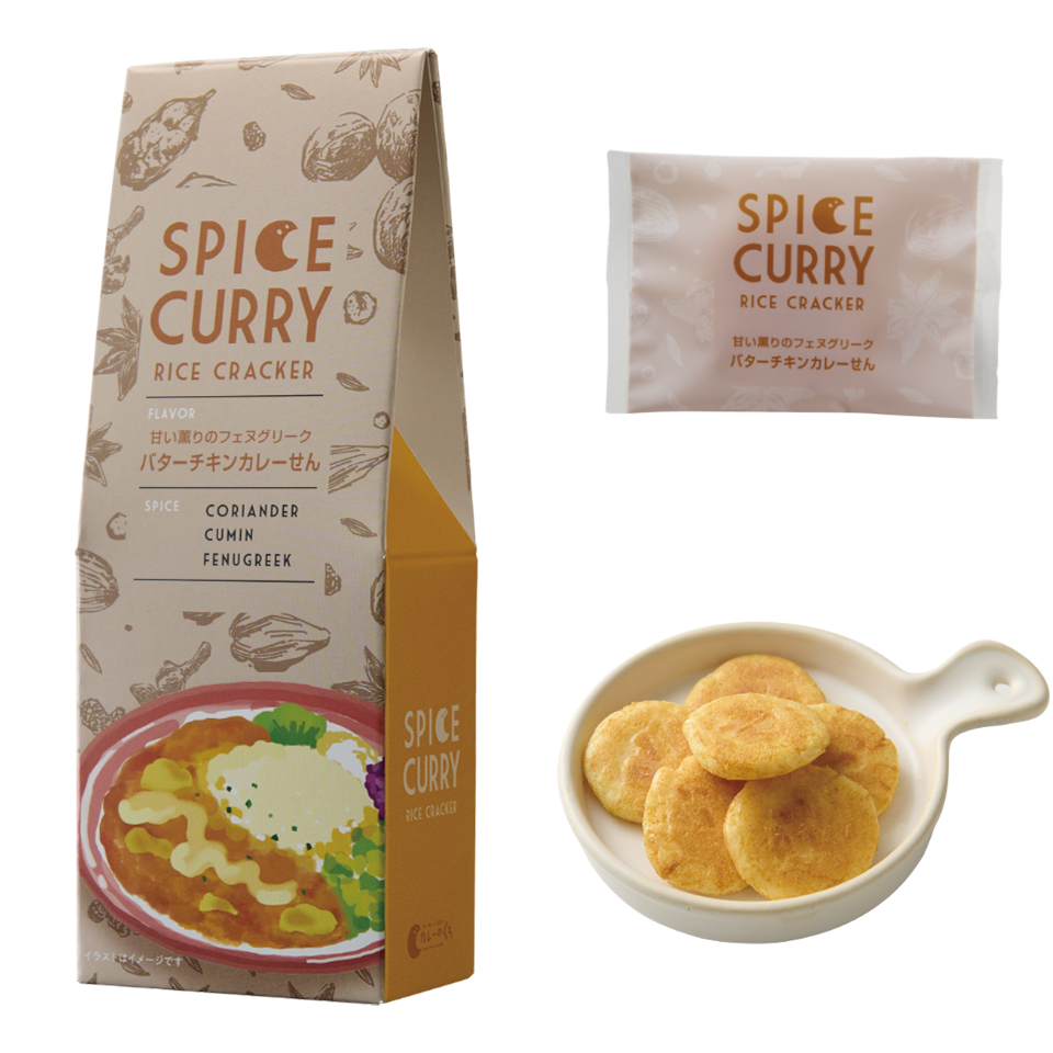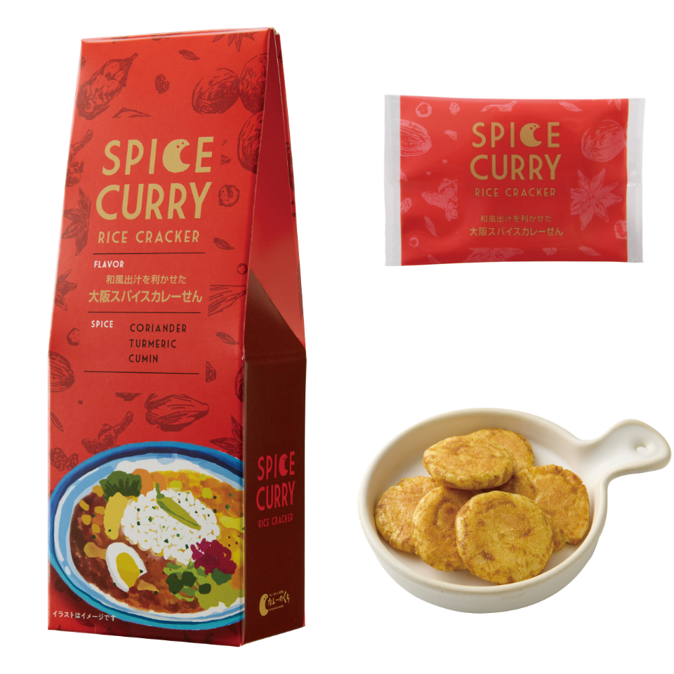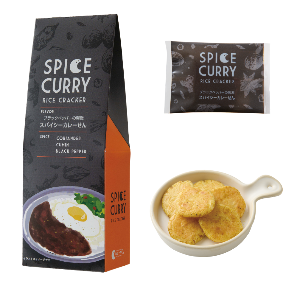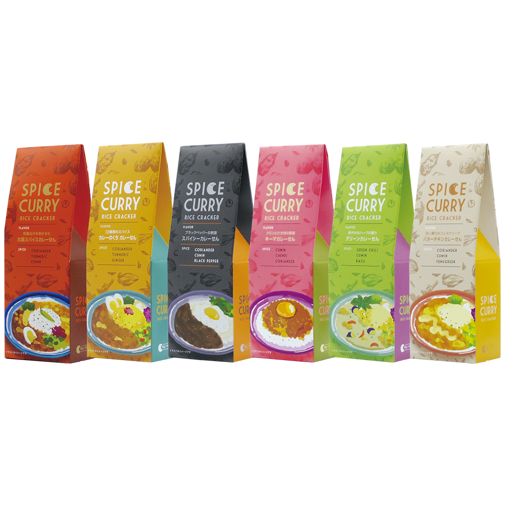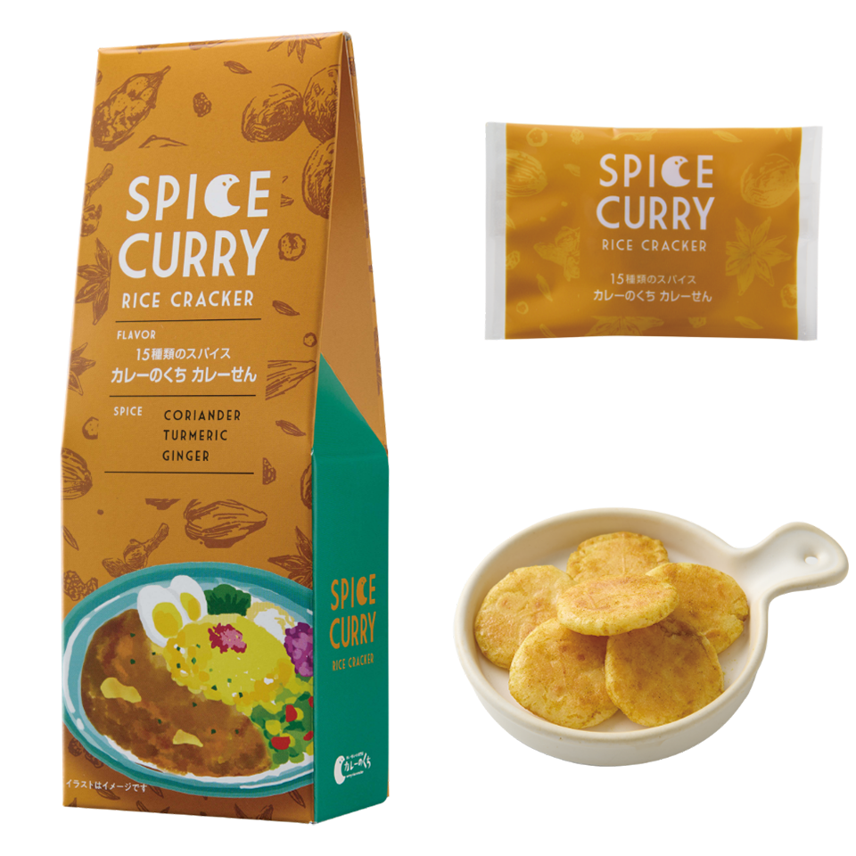 定番フレーバー 和風出汁を利かせた 大阪スパイスカレーせん SPICE CORIANDER TURMERIC CUMIN ふんわり香るカツオ出汁と複雑に絡み合うスパイスの風味を楽しんで。 税込594円(本体価格 550円) 内容量33g(約14枚) ご購入はこちら ブラックペッパーの刺激 スパイシーカレーせん SPICE CORIANDER CUMIN BLACK PEPPER パッとはじける刺激的な辛さとコクを味わう、少し大人のカレーせん。 税込594円(本体価格 550円) 内容量33g(約14枚) ご購入はこちら 15種類のスパイス カレーのくちカレーせん SPICE CORIANDER TURMERIC GINGER マイルドな辛味と、スパイスの香りと旨味を楽しんでもらえる当ブランドを代表する一品です。 税込594円(本体価格 550円) 内容量33g(約14枚) ご購入はこちら クミンとひき肉の風味 キーマカレーせん SPICE CUMIN CHENPI CORIANDER 何枚でも食べたくなる、お肉の旨味とスパイス&ハーブのハーモニー。 税込594円(本体価格 550円) 内容量33g(約14枚) ご購入はこちら 爽やかなハーブの香り グリーンカレーせん SPICE GREEN CHILI CUMIN BASIL ココナッツの甘味と爽やかな香草が特徴のタイ料理の代表的なカレー味。 税込594円(本体価格 550円) 内容量33g(約14枚) ご購入はこちら 甘い薫りのフェヌグリーク バターチキンカレーせん SPICE CORIANDER CUMIN FENUGREEK ふわっと香るスパイスとバターの風味、鶏肉のジューシー感がたまらない。 税込594円(本体価格 550円) 内容量33g(約14枚) ご購入はこちら カレーのくち おまとめセット商品 カレーのくち おまとめ 全種(6種) カレーのくちの定番フレーバー全6種類をお楽しみください。 税込3,564円(本体価格 3,300円) 内容量 各33g ご購入はこちら
