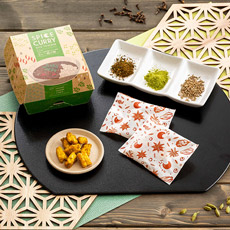 クラフト紙の風合いを活かし、スパイスのモチーフを取り入れた“和モダン”なデザインに仕上げました。