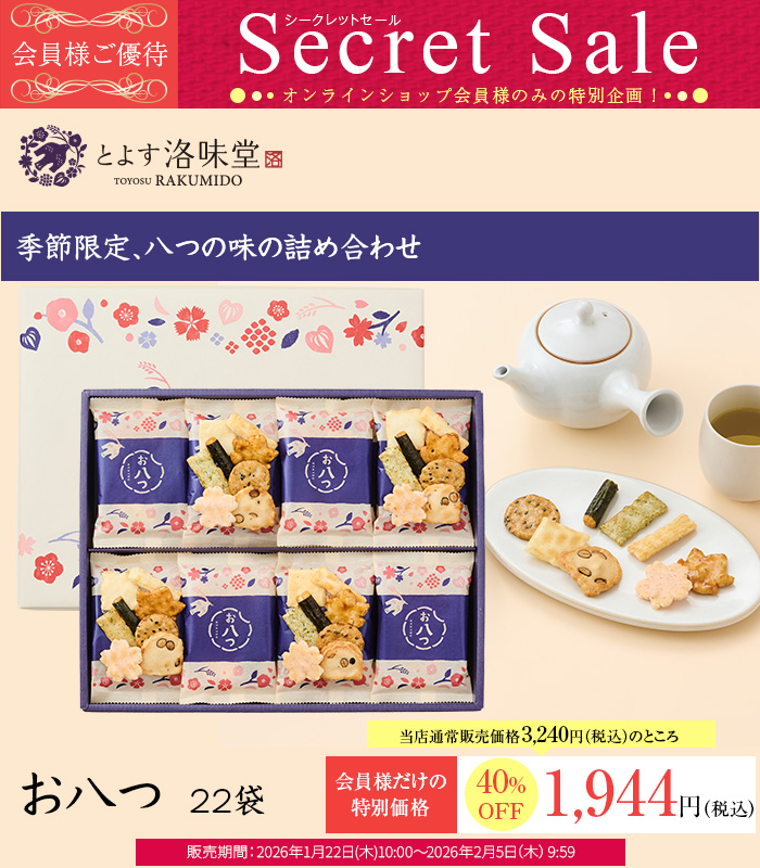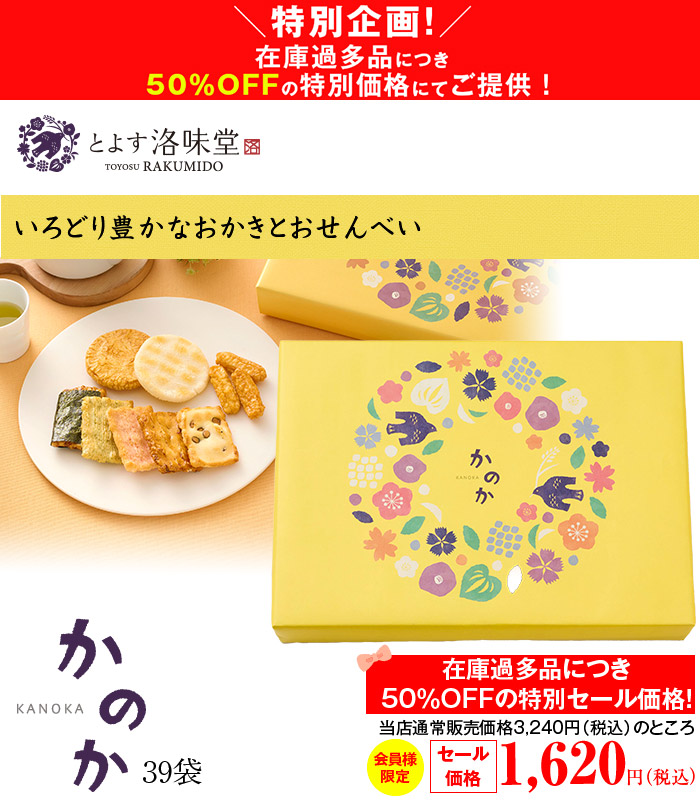 素材や食感にこだわって焼き上げたとよす自慢のおいしさを、バラエティ豊かに詰め合わせた「洛味堂 かのか 39袋」がオンラインショップ会員様だけに【特別価格50%OFF】!